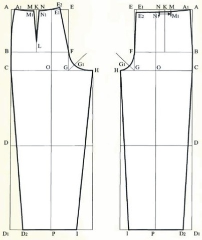 МК = NK = раствор задней вытачки = = глубина задней вытачки / 2.